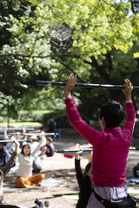 さて、自然の中でのヨガ棒レッスンを大阪でさせていただきました。日本最大のヨガイベント・ヨガフェスタ横浜のサテライトイベント、「ヨガフェスタ大阪サテライト」が長居植物園で開催され、植物園でヨガ棒の体験をしていただきました。